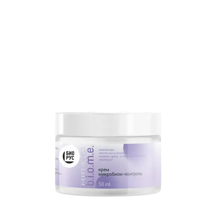 Формула крема - сочетание постбиотиков (лизатов лакто- и бифидобактерий), церамидов NP и холестерола, растительных масел (ши, жожоба, расторопши, сои), экстрактов розмарина и центеллы азиатской.